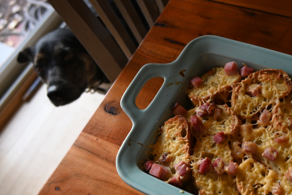 This was leftover Christmas ham made into a delectable savory bread pudding. All the stars.