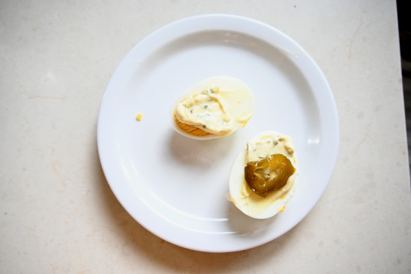 I am a big lover of deviled eggs and an equal “disliker” of their preparation, so I landed upon a nice “hack” where I mix mayo, mustard, and pickle relish in a jar, to my best estimate of topping a dozen eggs, and keep it in the fridge. When I get a hankering, I peel however many I like, smear a little or a lot on the halves, and I am good to go. So simple, yet so pleasing. I sometimes add a slice of cowboy candy for that chef’s kiss.