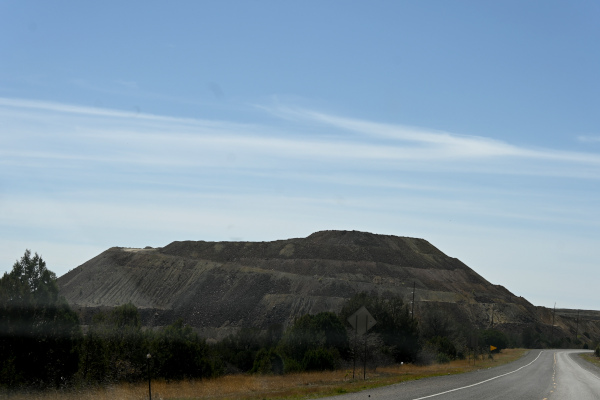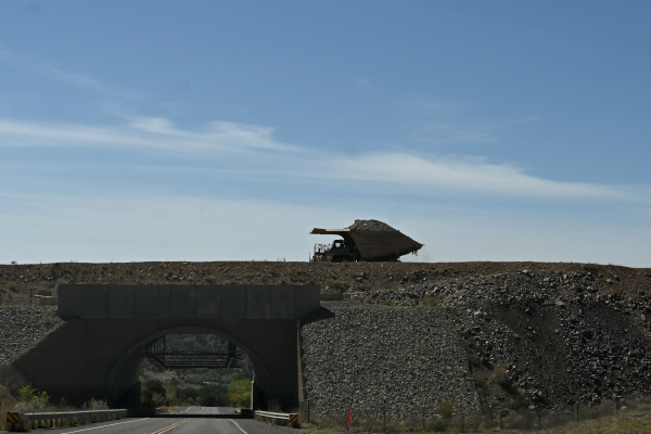 Tailings from the Chino Mine and most gigantic dump truck extraordinaire doing the work of organizing the landscape.